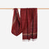 This Peace / Ahimsa silk scarf has been made with handspun silk dyed with sapanwood with temple design border woven in turmeric/ tea leaf colour.