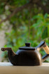 Exquisitely handcrafted black stone tea kettle is made from weathered rock and serpentine rock which according to locals are available at Longpi ( Manipur ) alone. The two rocks are crushed to a powder and mixed with water in the ration of 5:3 to form a clay like consistency. The dull-brown mixture is kneaded the entire day and flattened on a wooden board for the initial slab work.