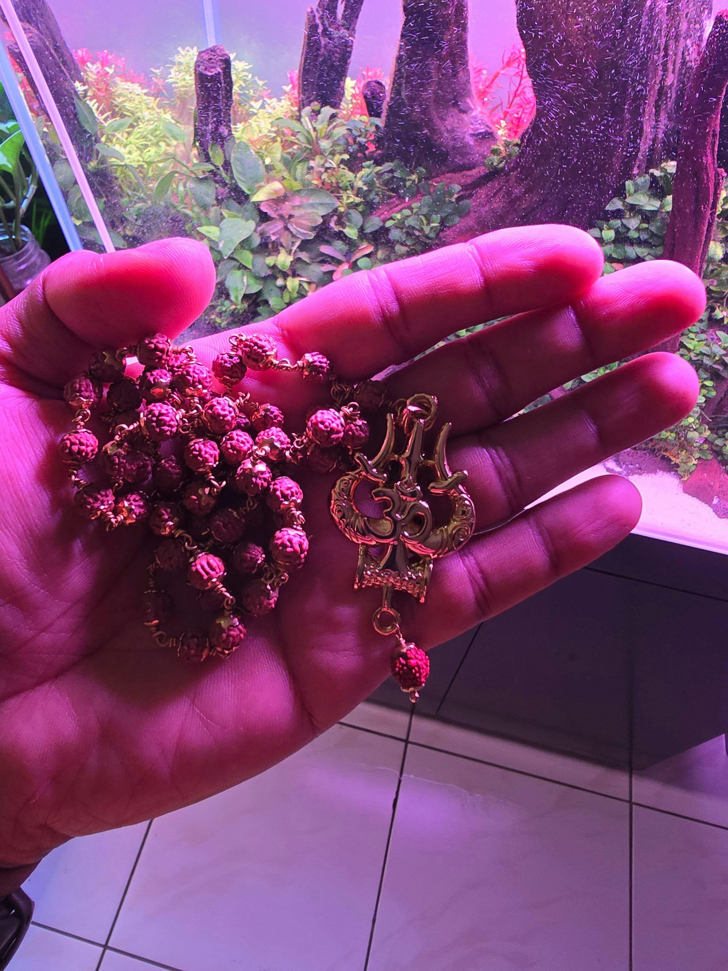 The Mala is energised and is in ready to wear condition. We consecrate the Mala with Gangajal, Honey, Yoghurt and Milk along with a small puja.