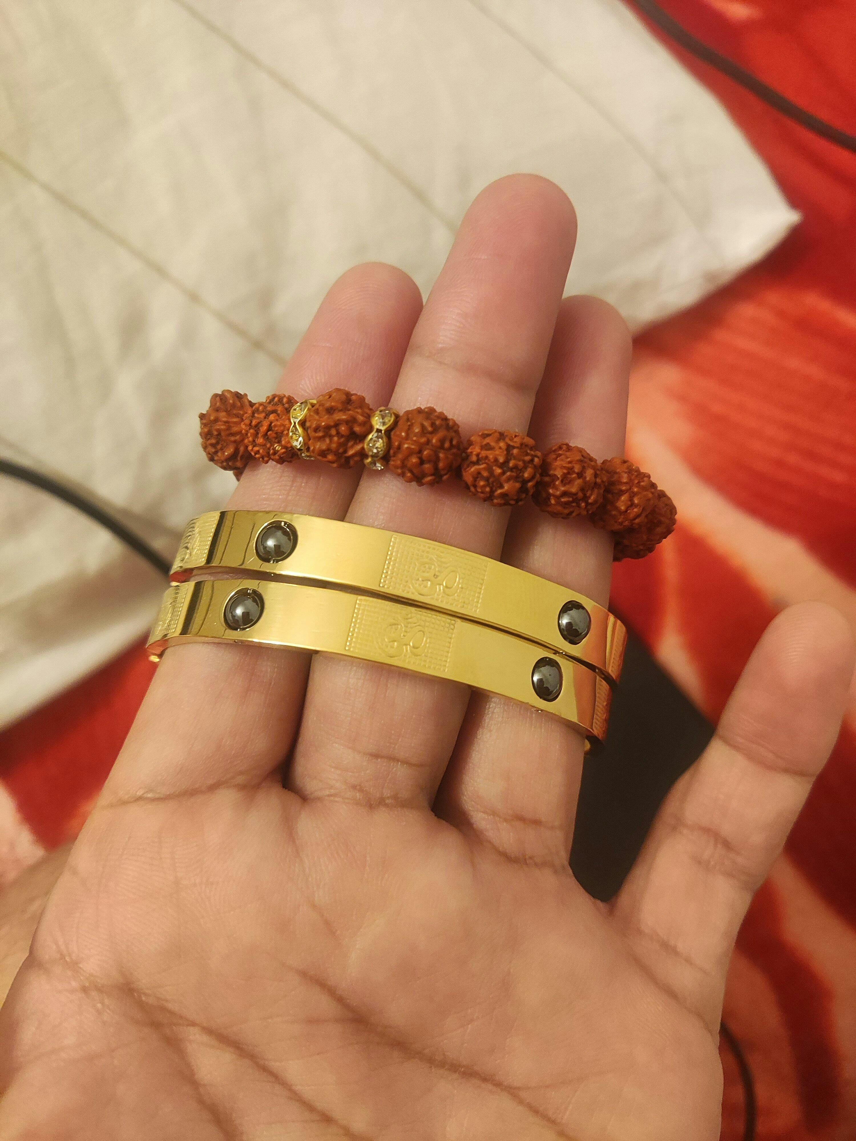 Loved this gold-plated kada — stylish, solid, and perfectly designed for daily wear or special occasions. The free Rudraksha bracelet was such a nice surprise — gives a classy yet spiritual vibe when worn together.